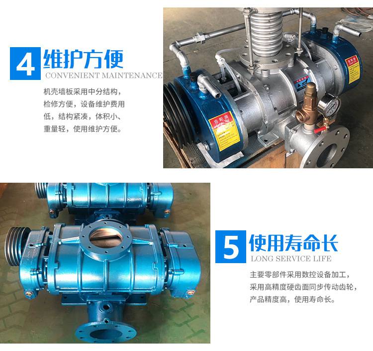 1.由于叶轮在机体内无摩擦地运行且不需要润滑,因此排气中不含油。它是化学,食品和其他行业的完美气动输送气源。