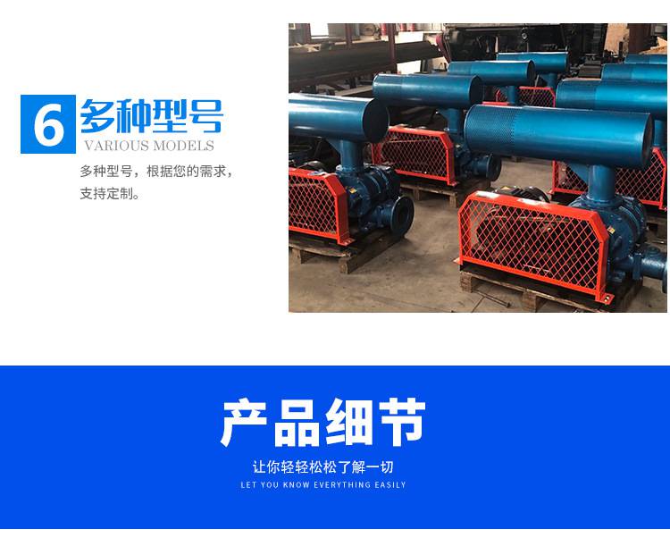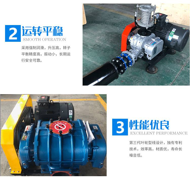 2.罗茨鼓风机属容积运行式鼓风机,用到时,随着压力的变化,流量变化很小,但是流量随速度变化,因此压力的选择范围很广,可以实现流量的选择通过选择速度。